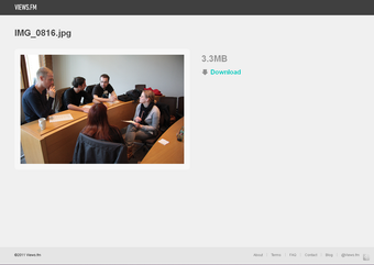 Views.fm offre surtout un moyen facile de partager dossiers et fichiers grâce à des liens que vous pouvez copier-coller dans un email ou autre. Vos correspondants pourront visualiser le contenu correspondant avant même de procéder au téléchargement.